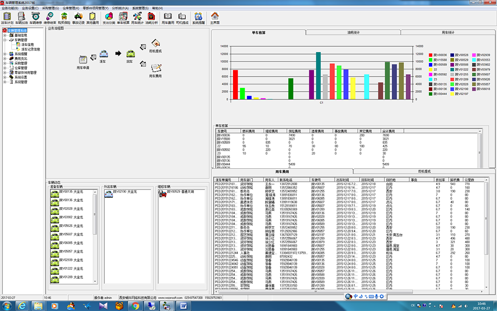 单车核算、用车统计、油耗分析、用车费用、驾驶员提成等。