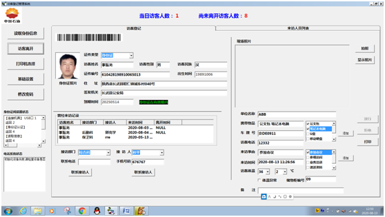 访客管理系统是指一套能有效快捷的管理公司外以及内部人员进出公司大门或者特定建筑物所需要填写进出记录等相关信息的管理软件。一般是公司前台和企业大门处使用,掌握并管理企业的来访人员动态。访客系统就是使用计算机快速登记访客人员信息,可阅读二代证、护照、驾照、居住证等,并可现场拍照。具有访客卡发放与管理功能。访客管理系统可无缝集成通用身份识别系统,使单位内外人员出入都能得到很好的管理,大幅提升场所安全级别。